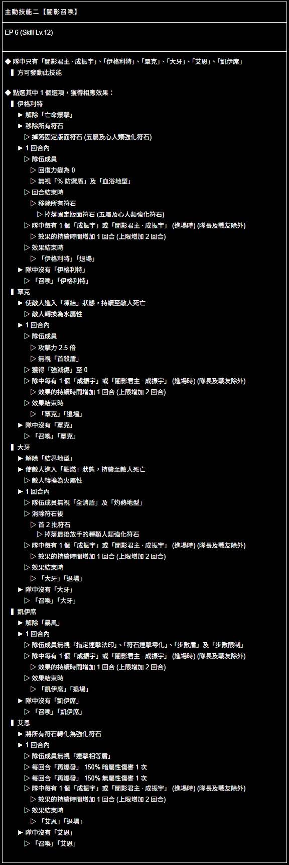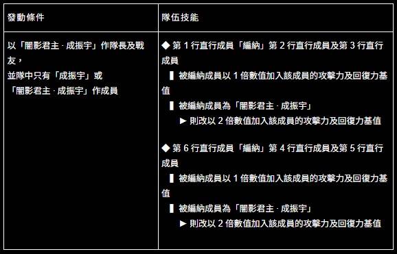 闇影君主 ‧ 成振宇 ── 追加隊伍技能