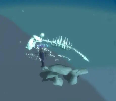 然後,下潛,就會看到有骨骸跟一顆球,目標就是點到那顆球,請準備好水下呼吸的方式